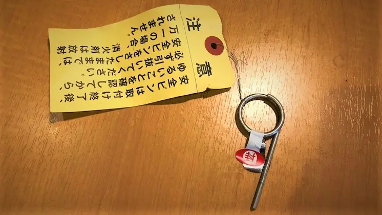 安全ピンを取り付けた状態では消火薬剤が放射されない為、確実に取り外しておきます。