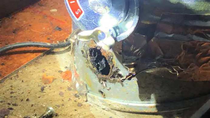 消火薬剤は放出されていませんでしたが、既設ダクト消火設備の蓄圧ゲージの値が0を指していました。